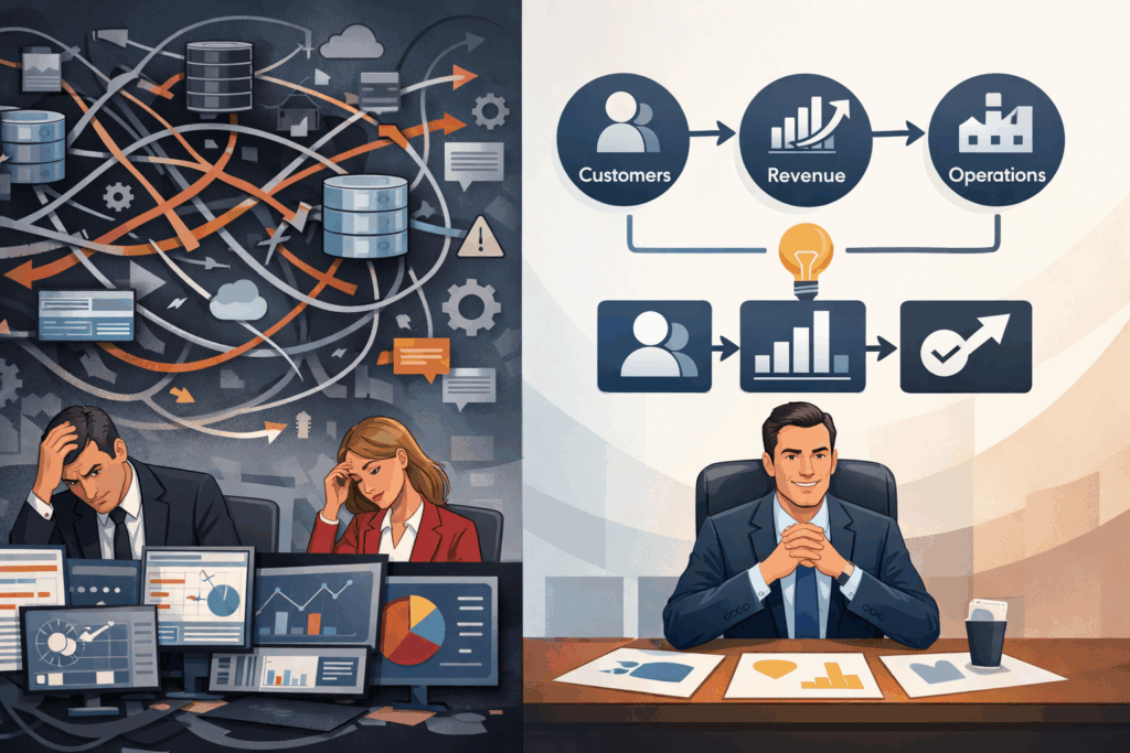 KPIs appear correct in isolation but conflict across functions. Simple questions require complex explanations. Analysts spend more time reconciling than analyzing. Leaders lose patience with dashboards that feel unintuitive.